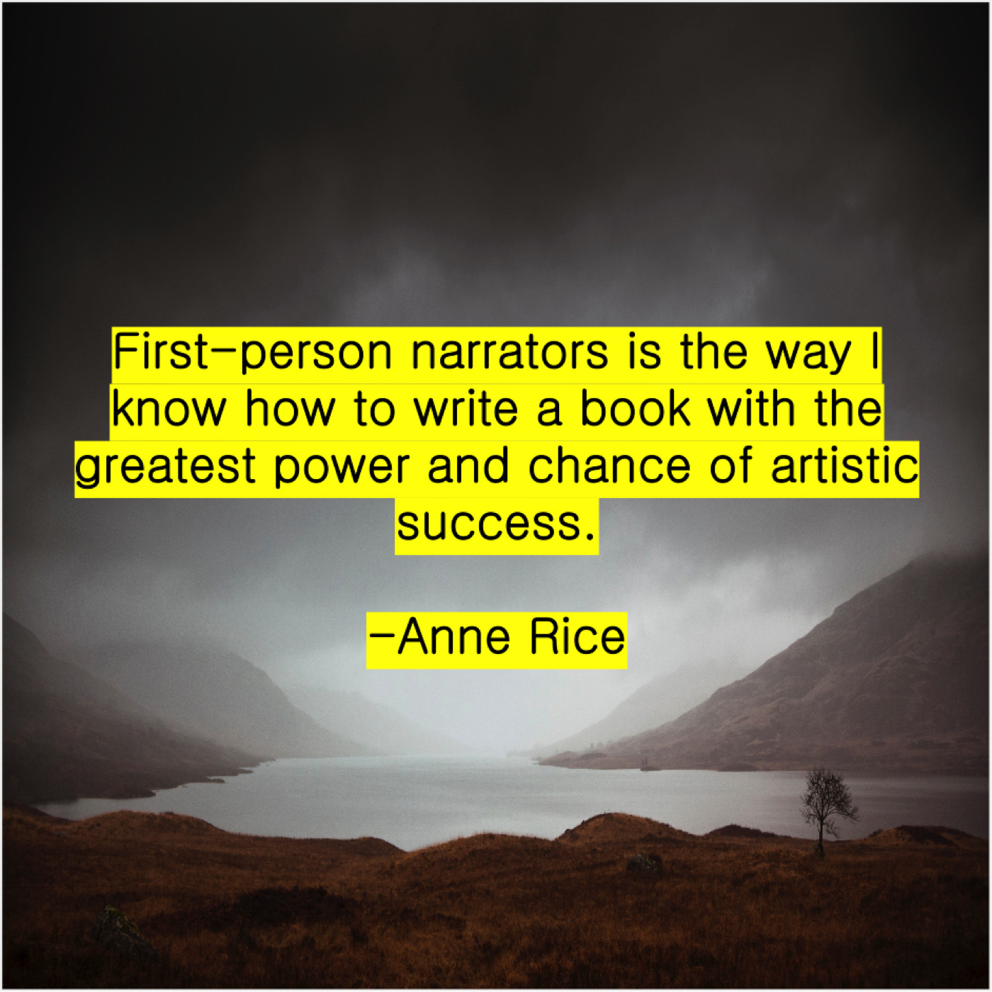 Anne Rice Anne Rice – First-person narrators is the… October 3, 2019 admin “First-person narrators is the way I know how to write a book with the greatest power and chance of artistic success.”-Anne Rice