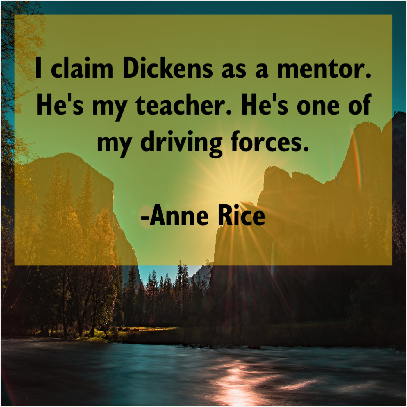 Anne Rice Anne Rice – I claim Dickens as a… September 3, 2019 admin “I claim Dickens as a mentor. He’s my teacher. He’s one of my driving forces.”-Anne Rice