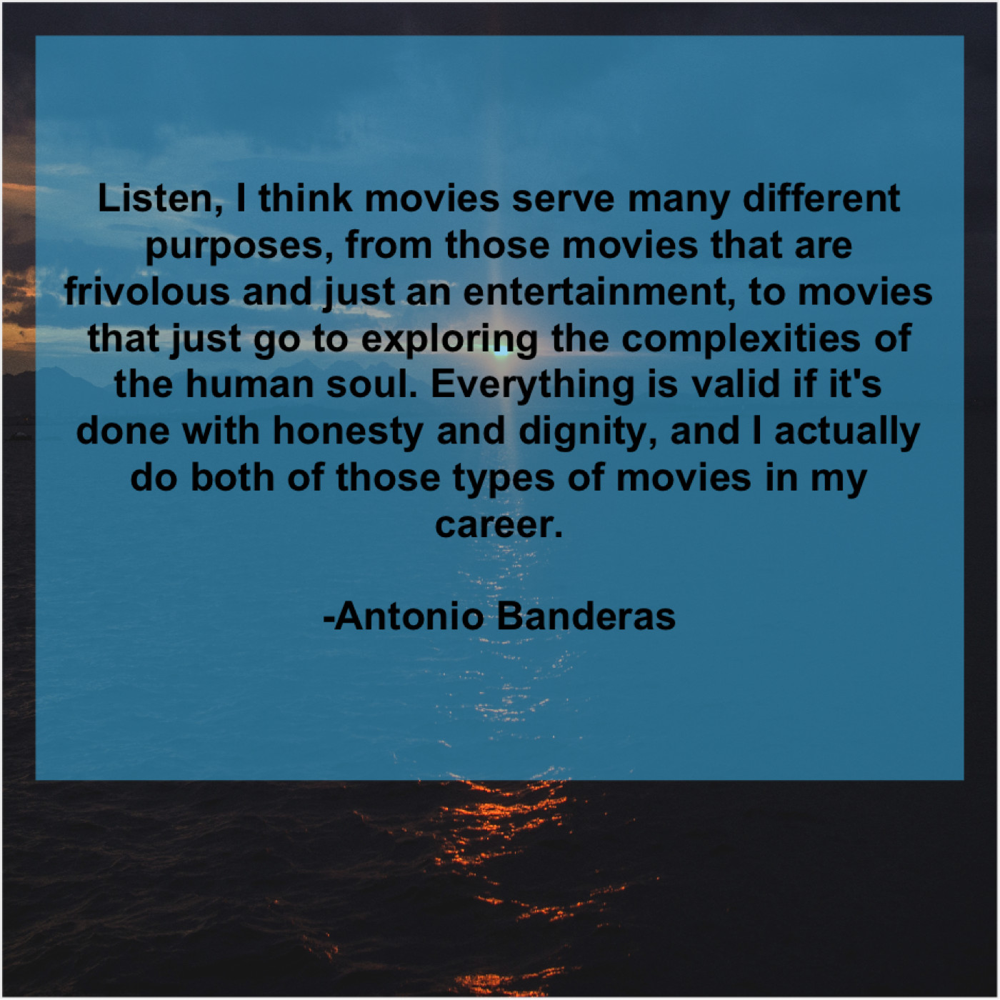 “Listen, I think movies serve many different purposes, from those movies that are frivolous and just an entertainment, to movies that just go to exploring the complexities of the human soul. Everything is valid if it’s done with honesty and dignity, and I actually do both of those types of movies in my career.”