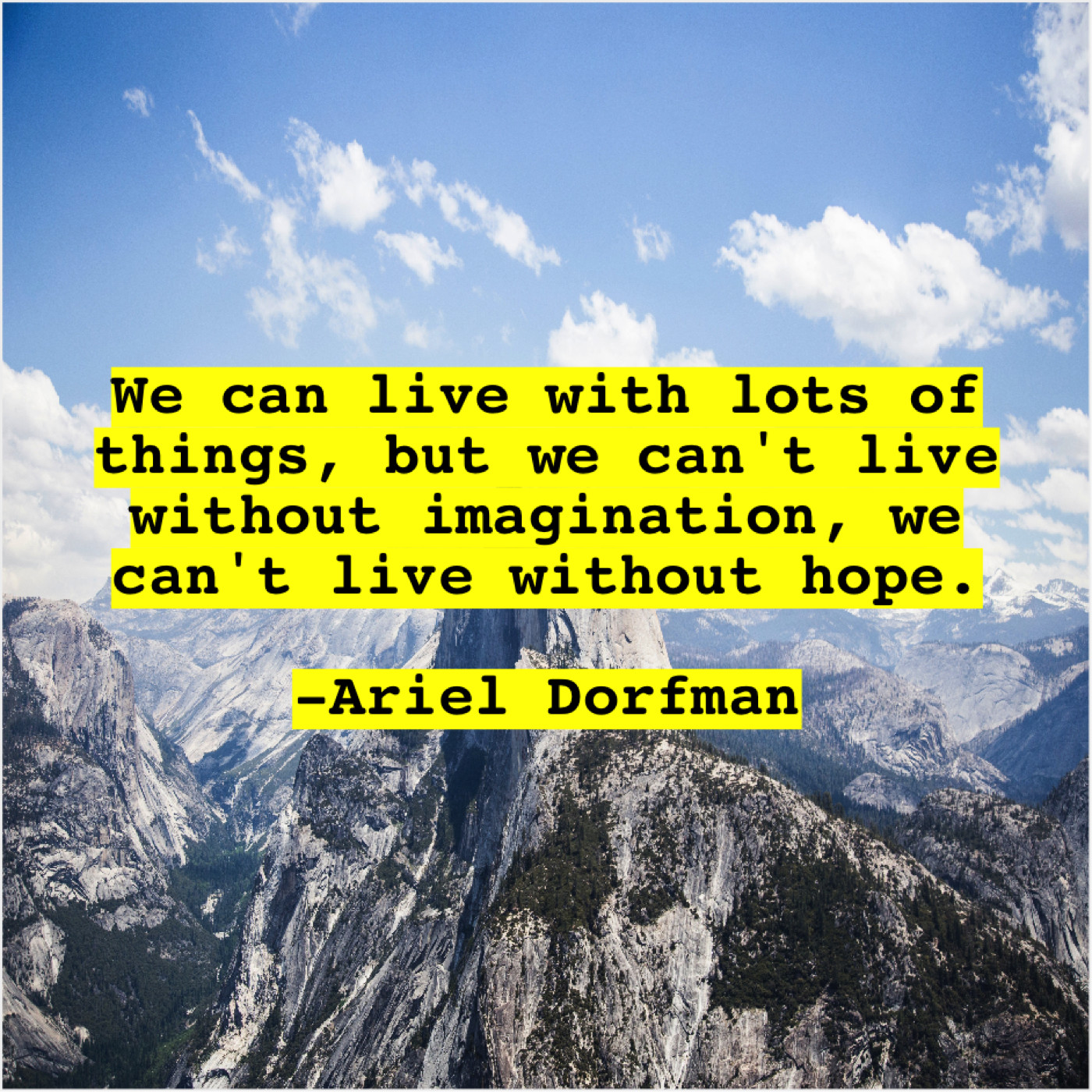 Ariel Dorfman Ariel Dorfman – We can live with lots… June 17, 2019 admin “We can live with lots of things, but we can’t live without imagination, we can’t live without hope.”-Ariel Dorfman