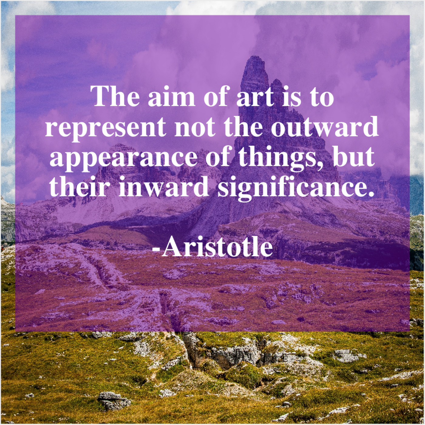 Aristotle Aristotle – The aim of art is… July 25, 2019 admin “The aim of art is to represent not the outward appearance of things, but their inward significance.”-Aristotle