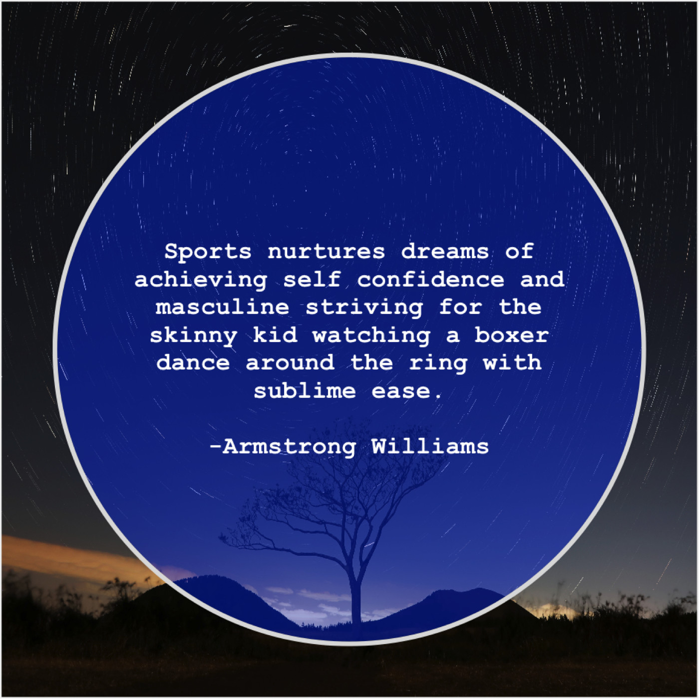 “Sports nurtures dreams of achieving self confidence and masculine striving for the skinny kid watching a boxer dance around the ring with sublime ease.”