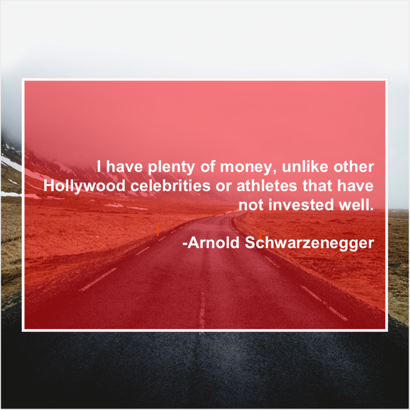 Arnold Schwarzenegger Arnold Schwarzenegger – I have plenty of money… October 19, 2019 admin “I have plenty of money, unlike other Hollywood celebrities or athletes that have not invested well.”-Arnold Schwarzenegger