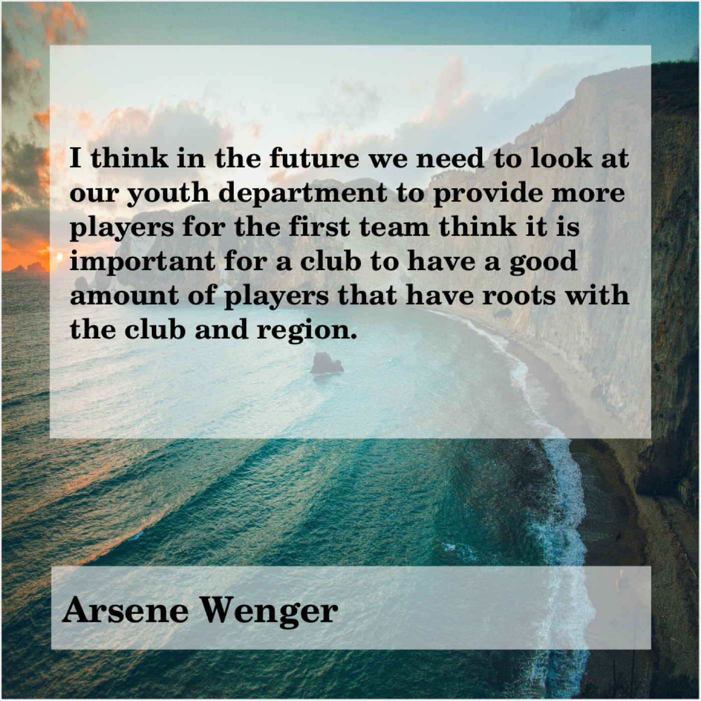 Arsene Wenger Arsene Wenger – I think in the future… August 24, 2019 admin “I think in the future we need to look at our youth department to provide more players for the first team think it is important for a club to have a good amount of players that have roots with the club and region.”-Arsene Wenger