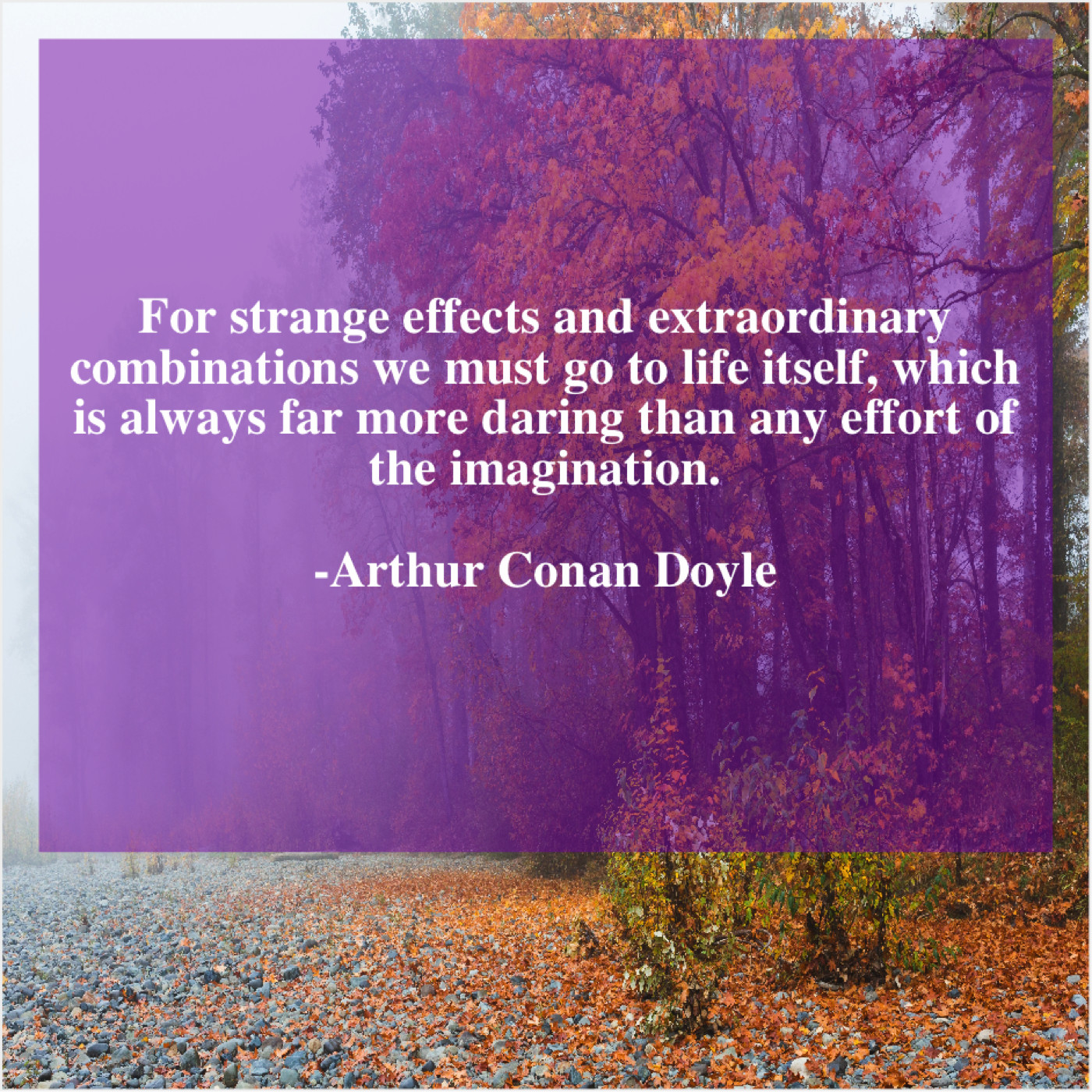 Arthur Conan Doyle Arthur Conan Doyle – For strange effects and extraordinary… December 8, 2018 admin “For strange effects and extraordinary combinations we must go to life itself, which is always far more daring than any effort of the imagination.”-Arthur Conan Doyle