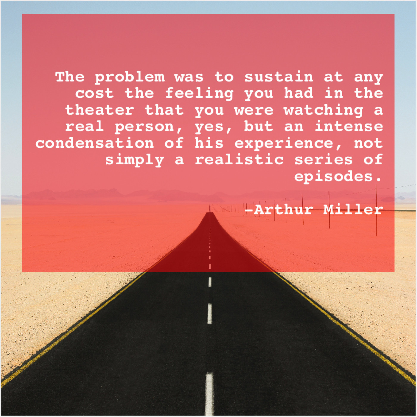 Arthur Miller Arthur Miller – The problem was to sustain… July 8, 2019 admin “The problem was to sustain at any cost the feeling you had in the theater that you were watching a real person, yes, but an intense condensation of his experience, not simply a realistic series of episodes.”-Arthur Miller