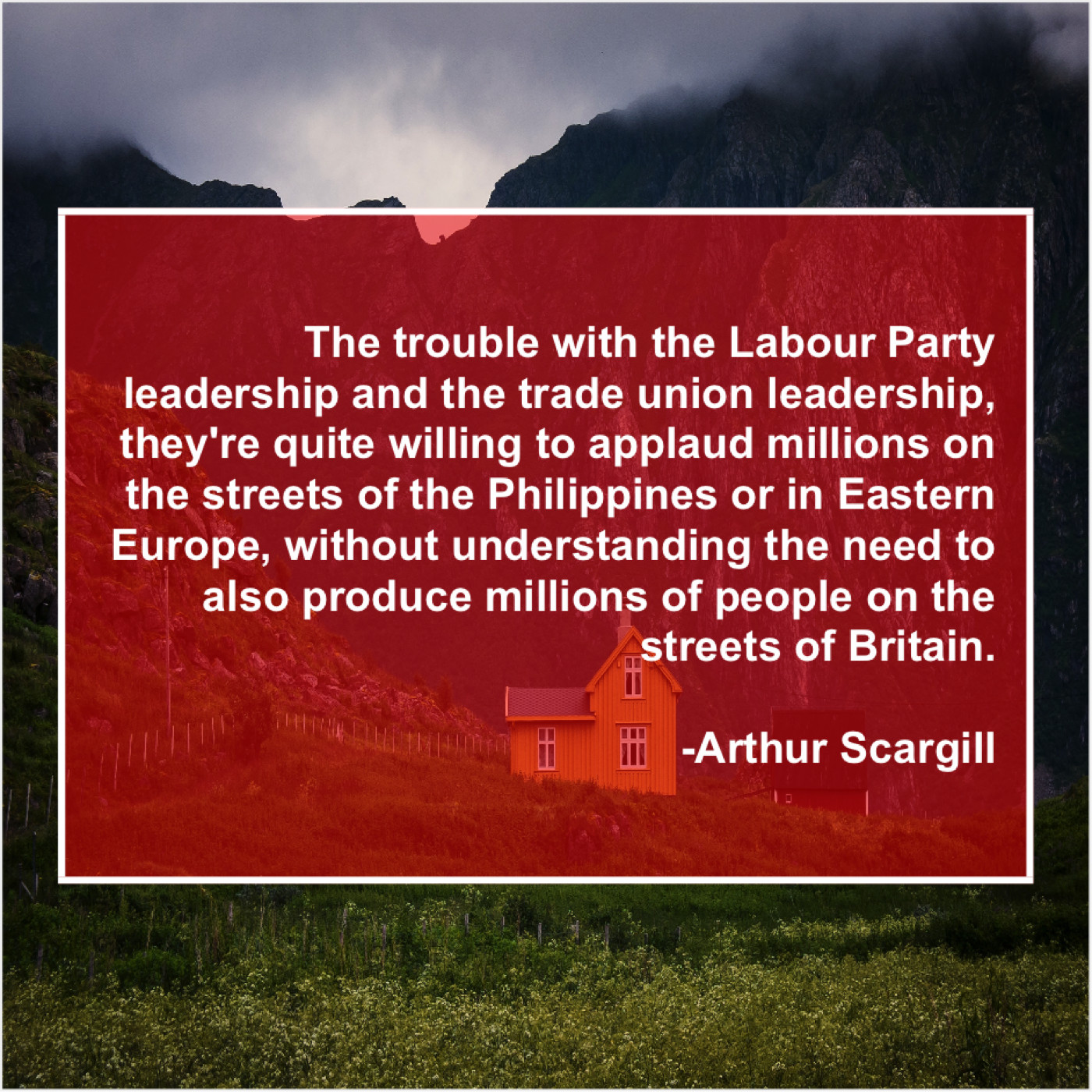 “The trouble with the Labour Party leadership and the trade union leadership, they’re quite willing to applaud millions on the streets of the Philippines or in Eastern Europe, without understanding the need to also produce millions of people on the streets of Britain.”