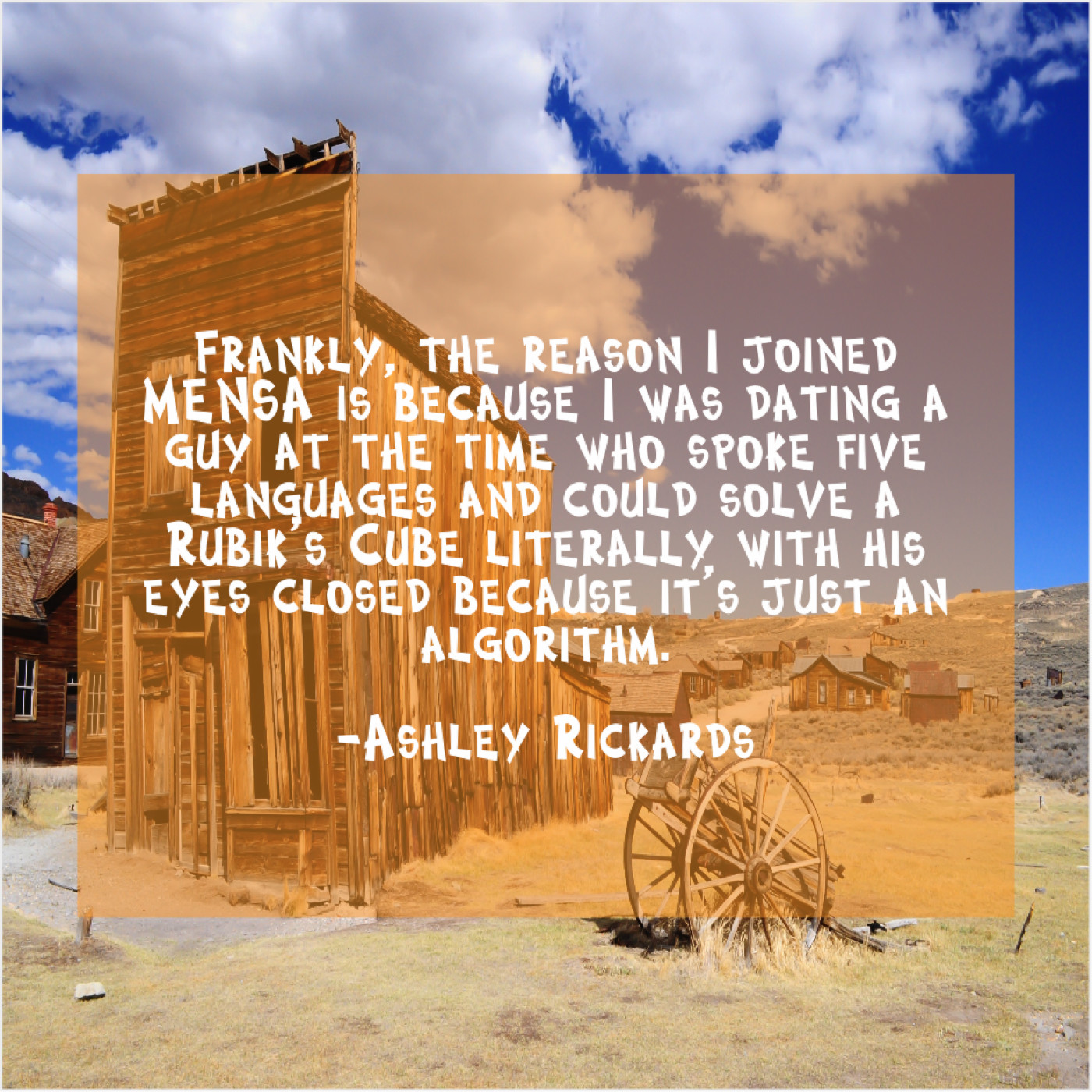 Ashley Rickards Ashley Rickards – Frankly, the reason I joined… July 1, 2019 admin “Frankly, the reason I joined MENSA is because I was dating a guy at the time who spoke five languages and could solve a Rubik’s Cube literally with his eyes closed because it’s just an algorithm.”-Ashley Rickards