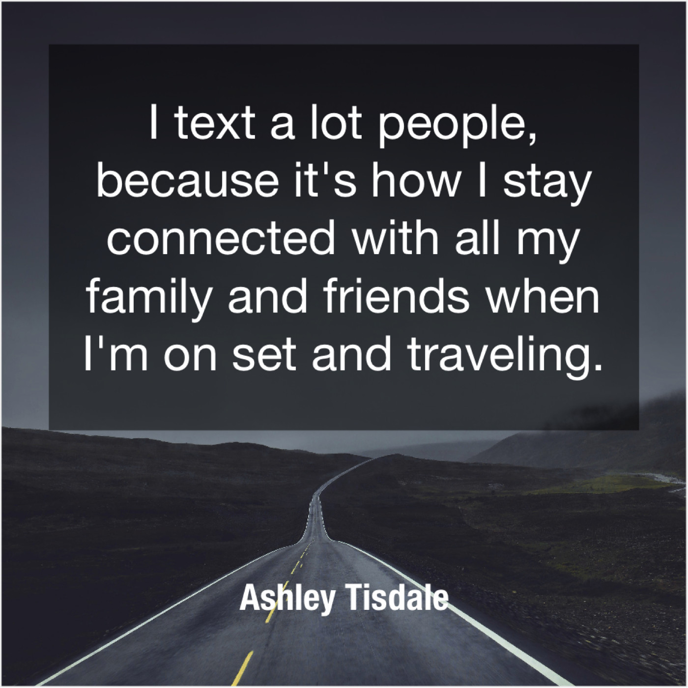 Ashley Tisdale Ashley Tisdale – I text a lot people… March 18, 2019 admin “I text a lot people, because it’s how I stay connected with all my family and friends when I’m on set and traveling.”-Ashley Tisdale