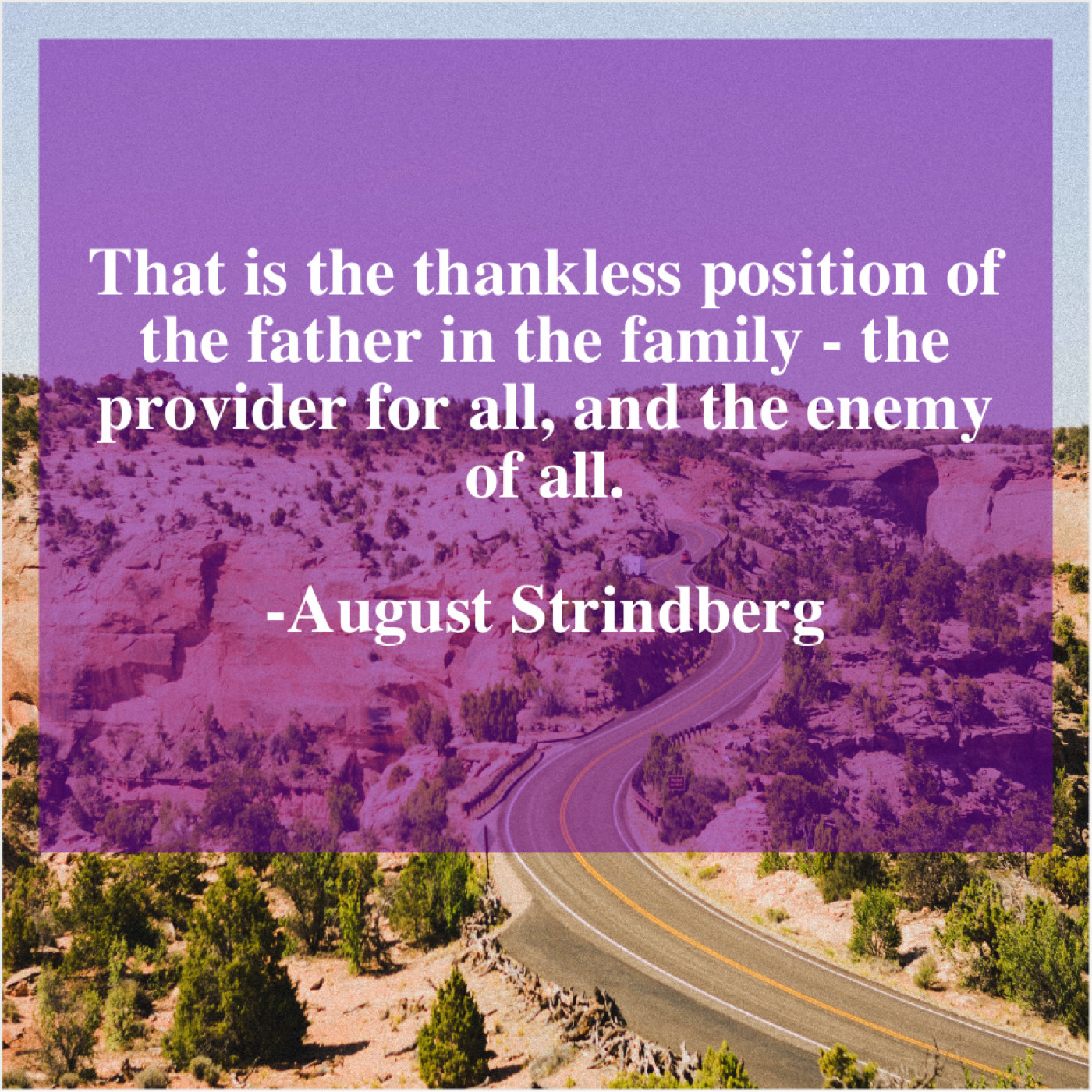 August Strindberg August Strindberg – That is the thankless position… June 2, 2019 admin “That is the thankless position of the father in the family – the provider for all, and the enemy of all.”-August Strindberg