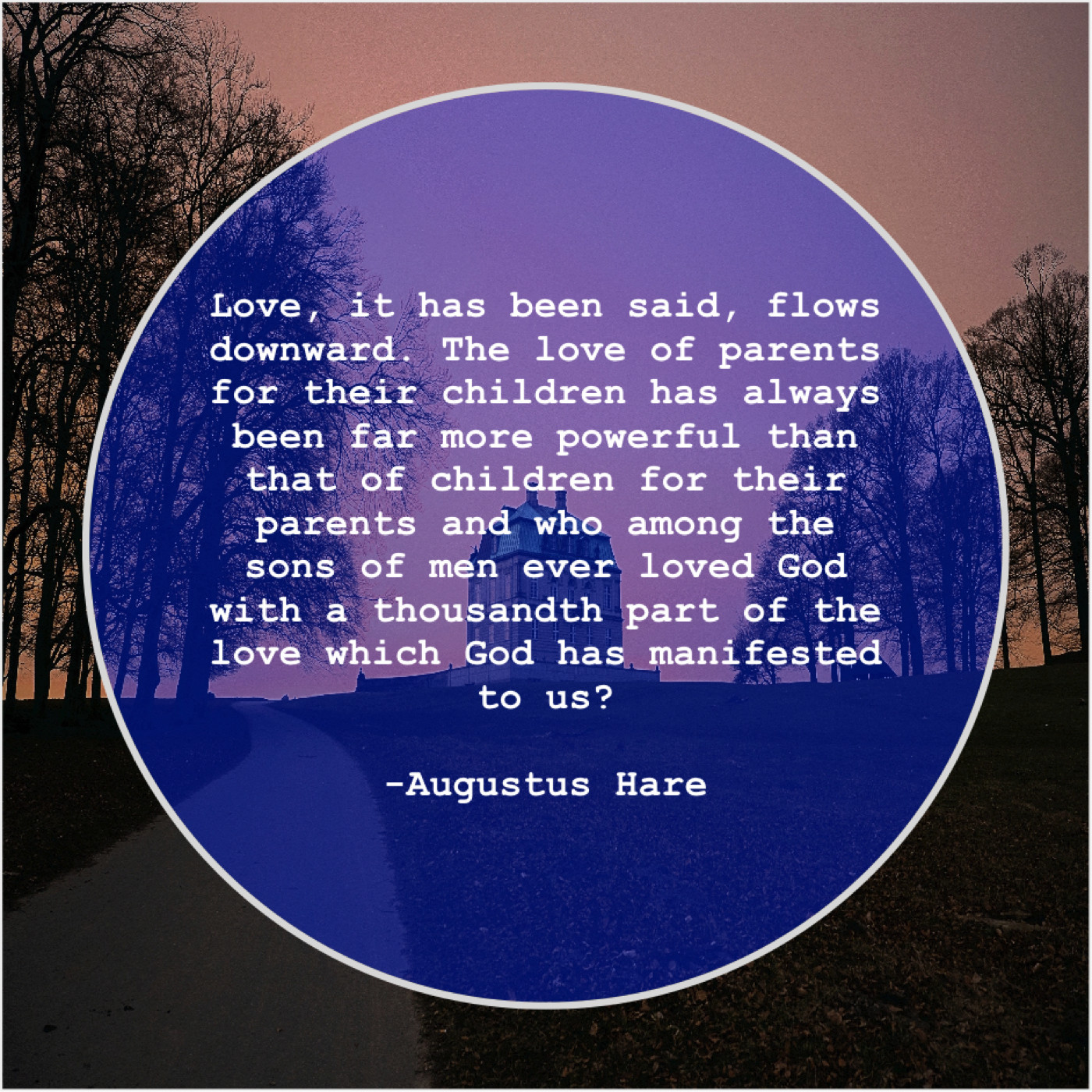 “Love, it has been said, flows downward. The love of parents for their children has always been far more powerful than that of children for their parents and who among the sons of men ever loved God with a thousandth part of the love which God has manifested to us?”