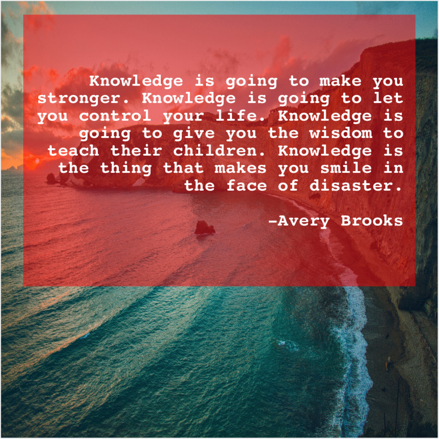 Avery Brooks Avery Brooks – Knowledge is going to make… May 12, 2019 admin “Knowledge is going to make you stronger. Knowledge is going to let you control your life. Knowledge is going to give you the wisdom to teach their children. Knowledge is the thing that makes you smile in the face of disaster.”-Avery Brooks