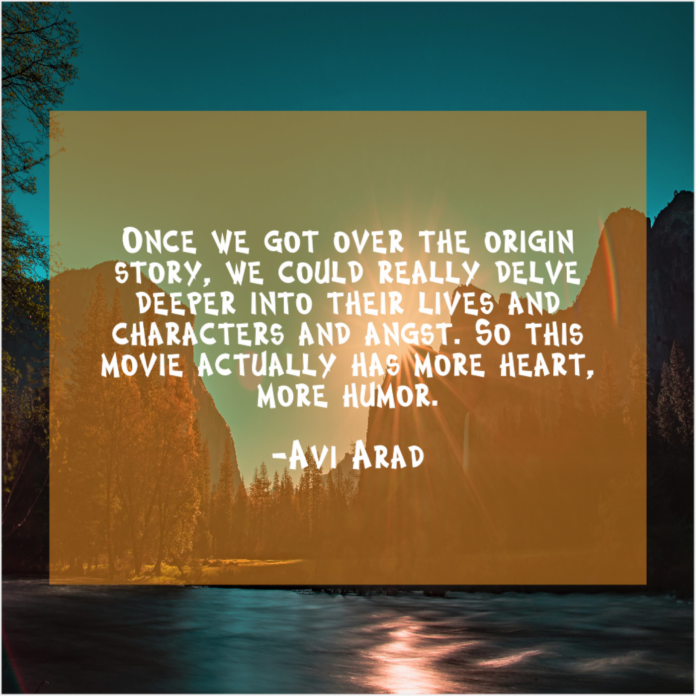 Avi Arad Avi Arad – Once we got over the… March 30, 2019 admin “Once we got over the origin story, we could really delve deeper into their lives and characters and angst. So this movie actually has more heart, more humor.”-Avi Arad