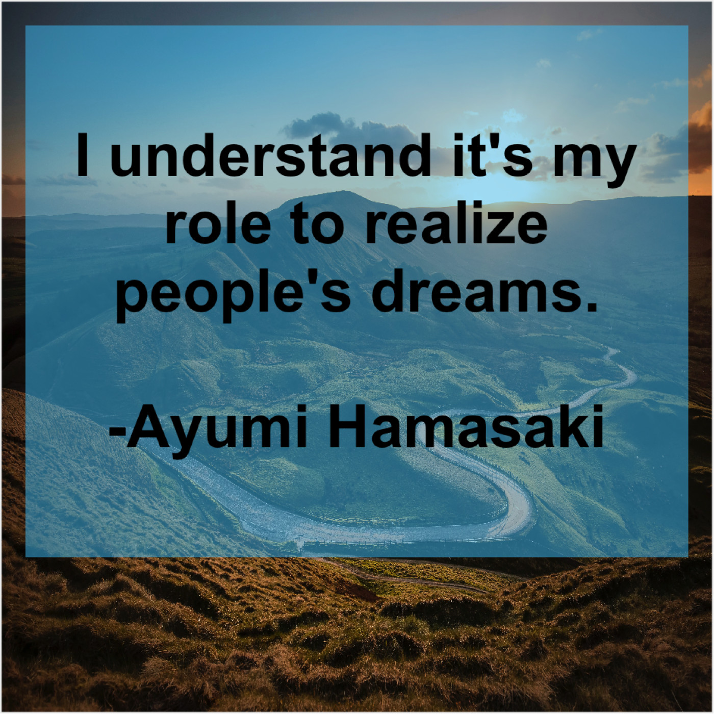 Ayumi Hamasaki Ayumi Hamasaki – I understand it’s my role… January 18, 2019 admin “I understand it’s my role to realize people’s dreams.”-Ayumi Hamasaki