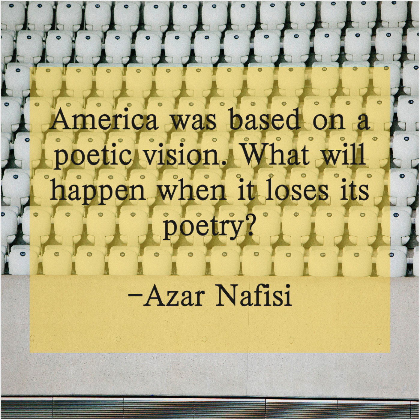 Azar Nafisi Azar Nafisi – America was based on a… August 23, 2019 admin “America was based on a poetic vision. What will happen when it loses its poetry?”-Azar Nafisi