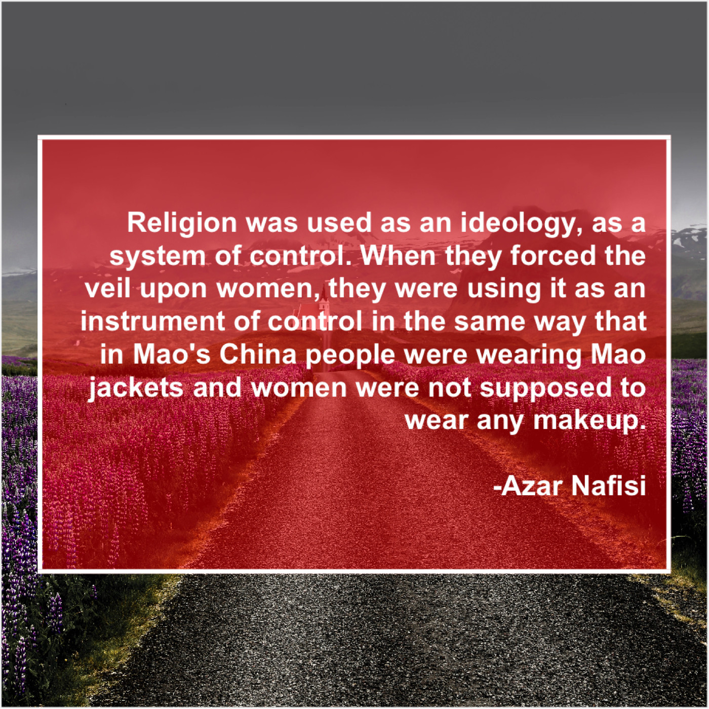 “Religion was used as an ideology, as a system of control. When they forced the veil upon women, they were using it as an instrument of control in the same way that in Mao’s China people were wearing Mao jackets and women were not supposed to wear any makeup.”