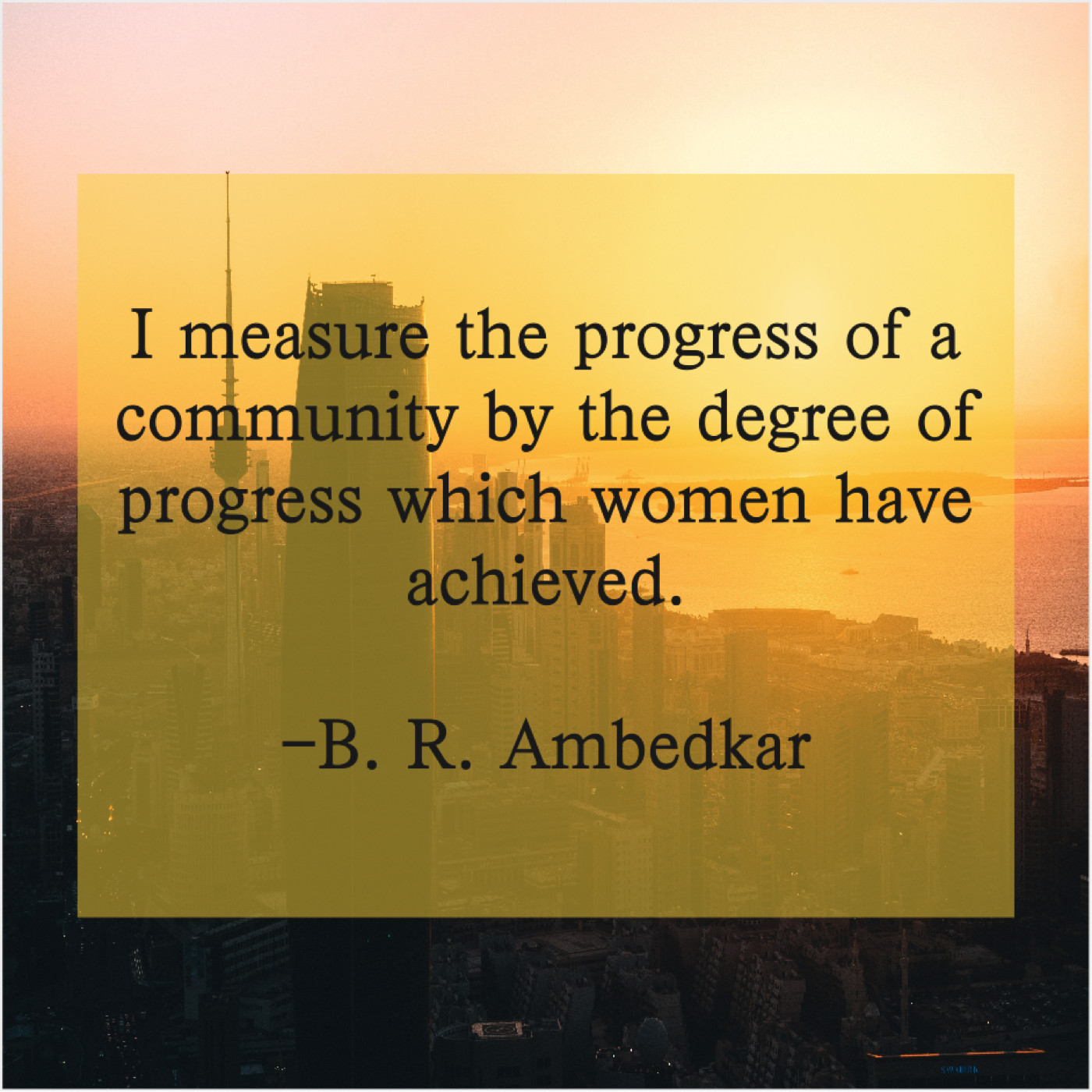 B. R. Ambedkar B. R. Ambedkar – I measure the progress of… July 21, 2019 admin “I measure the progress of a community by the degree of progress which women have achieved.”-B. R. Ambedkar