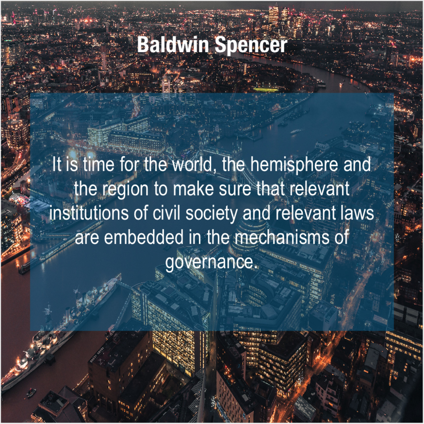 Baldwin Spencer Baldwin Spencer – It is time for the… September 2, 2019 admin “It is time for the world, the hemisphere and the region to make sure that relevant institutions of civil society and relevant laws are embedded in the mechanisms of governance.”-Baldwin Spencer