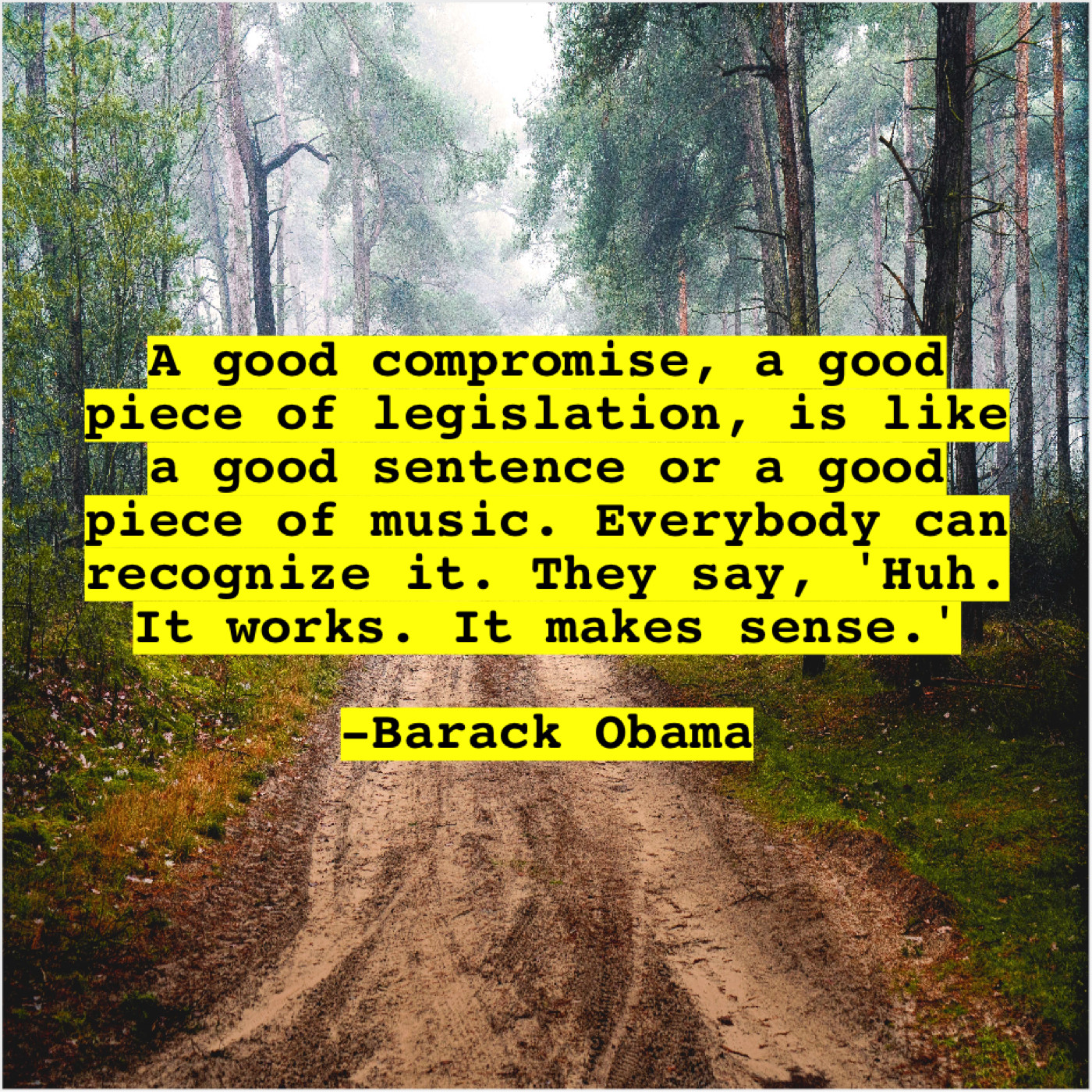 Barack Obama Barack Obama – A good compromise, a good… October 17, 2019 admin “A good compromise, a good piece of legislation, is like a good sentence or a good piece of music. Everybody can recognize it. They say, ‘Huh. It works. It makes sense.'”-Barack Obama
