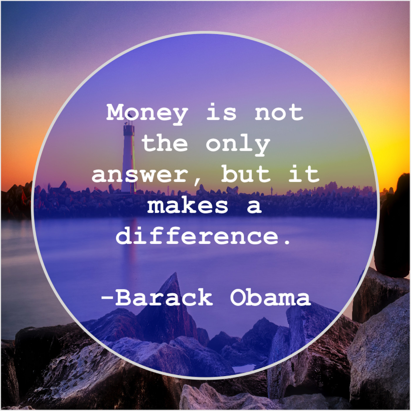 Barack Obama Barack Obama – Money is not the only… October 12, 2019 admin “Money is not the only answer, but it makes a difference.”-Barack Obama