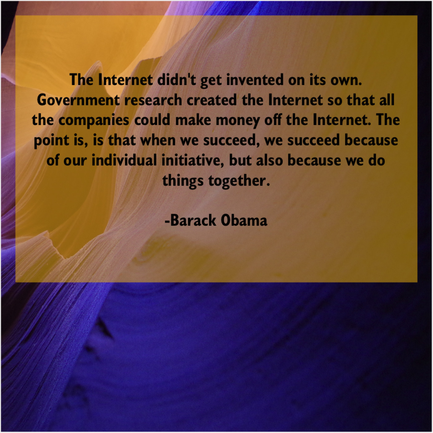 “The Internet didn’t get invented on its own. Government research created the Internet so that all the companies could make money off the Internet. The point is, is that when we succeed, we succeed because of our individual initiative, but also because we do things together.”