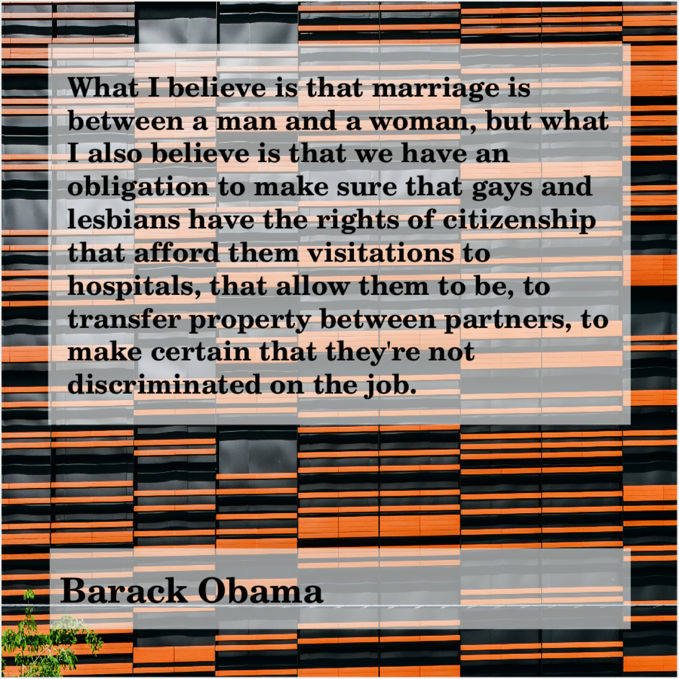 “What I believe is that marriage is between a man and a woman, but what I also believe is that we have an obligation to make sure that gays and lesbians have the rights of citizenship that afford them visitations to hospitals, that allow them to be, to transfer property between partners, to make certain that they’re not discriminated on the job.”