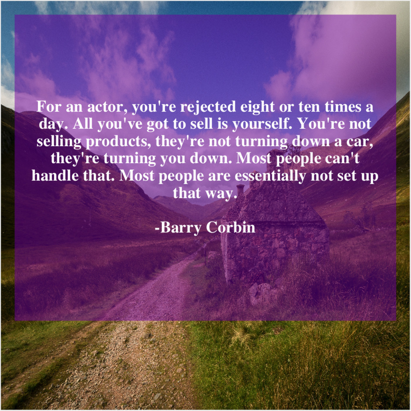 “For an actor, you’re rejected eight or ten times a day. All you’ve got to sell is yourself. You’re not selling products, they’re not turning down a car, they’re turning you down. Most people can’t handle that. Most people are essentially not set up that way.”