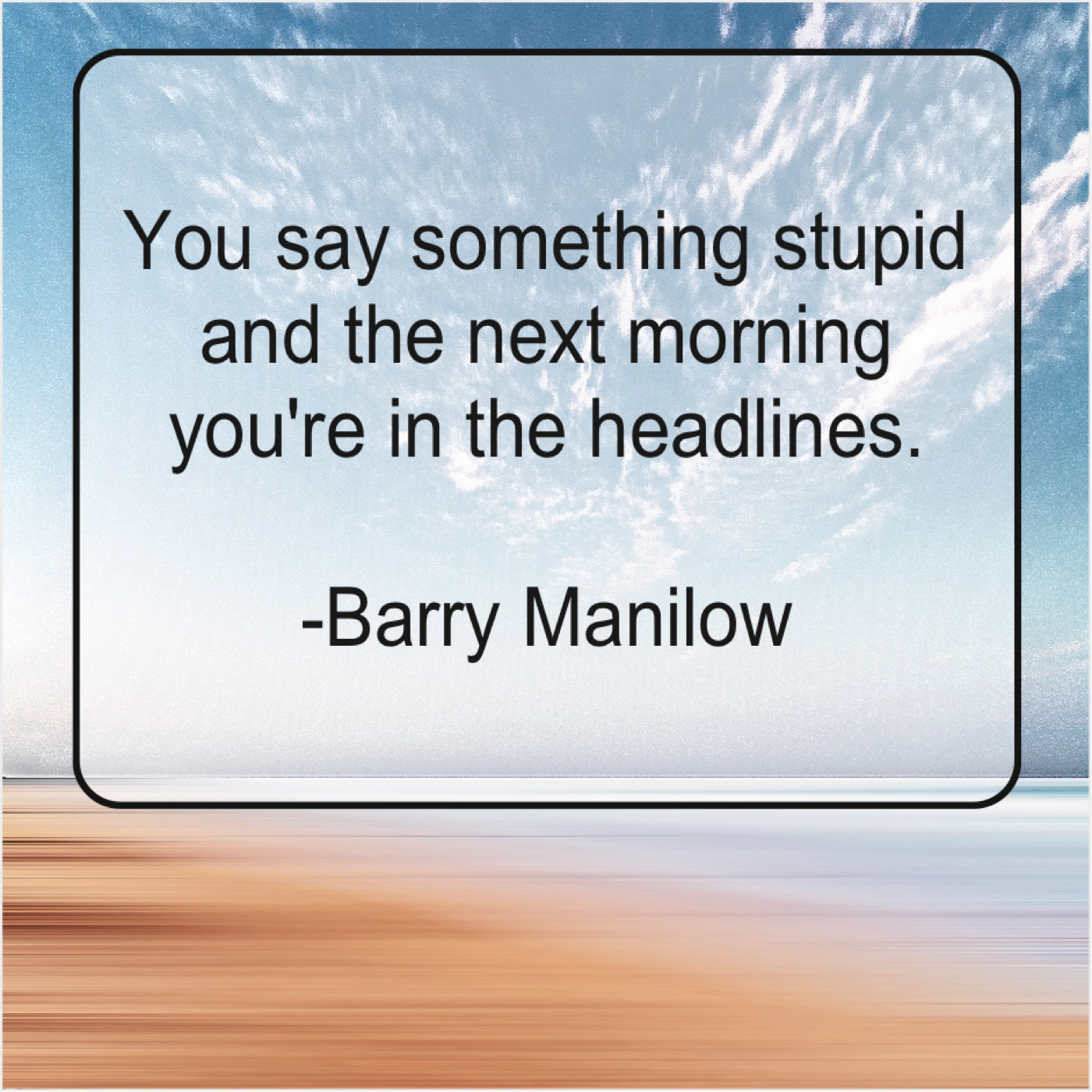 Barry Manilow Barry Manilow – You say something stupid and… September 5, 2019 admin “You say something stupid and the next morning you’re in the headlines.”-Barry Manilow