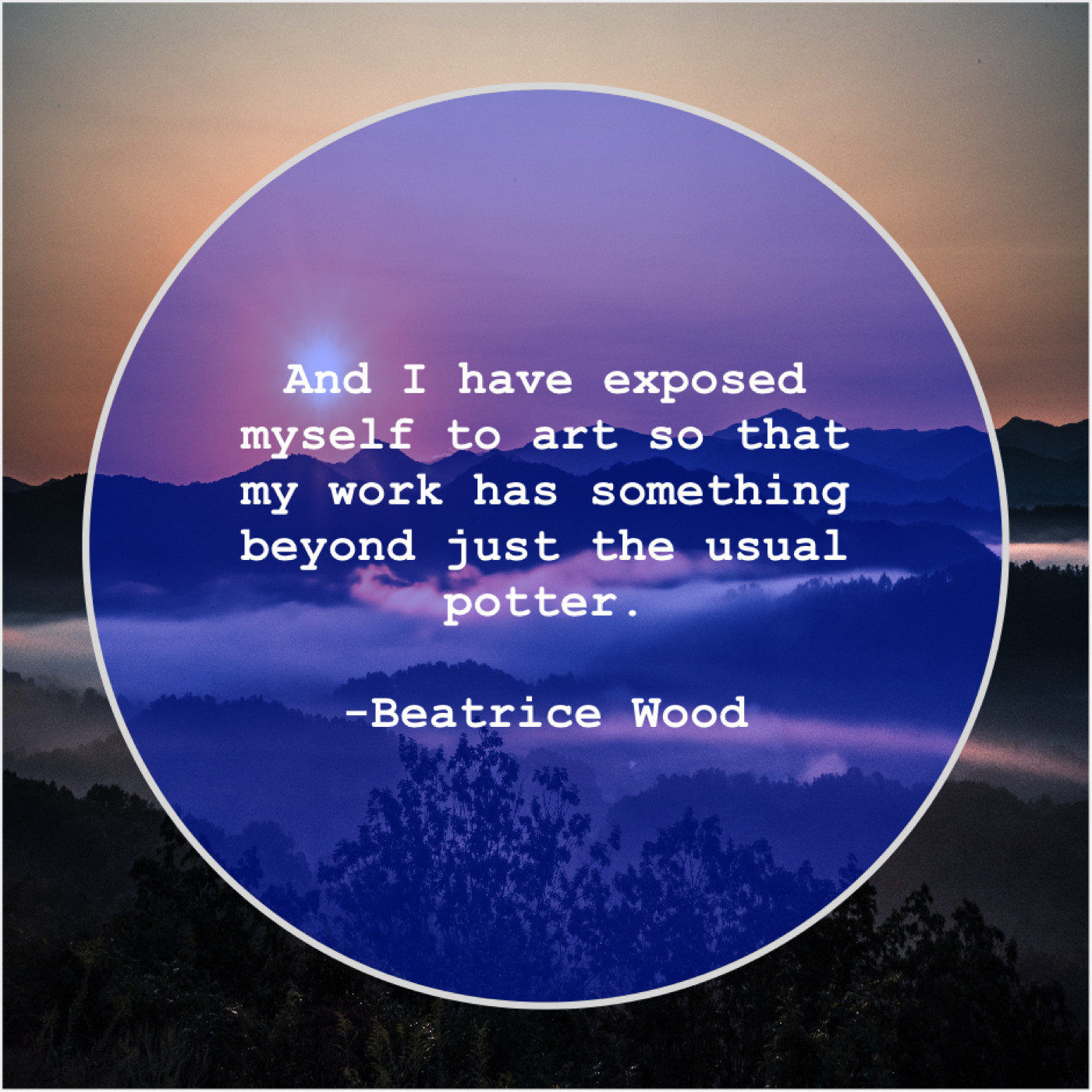 Beatrice Wood Beatrice Wood – And I have exposed myself… July 16, 2019 admin “And I have exposed myself to art so that my work has something beyond just the usual potter.”-Beatrice Wood