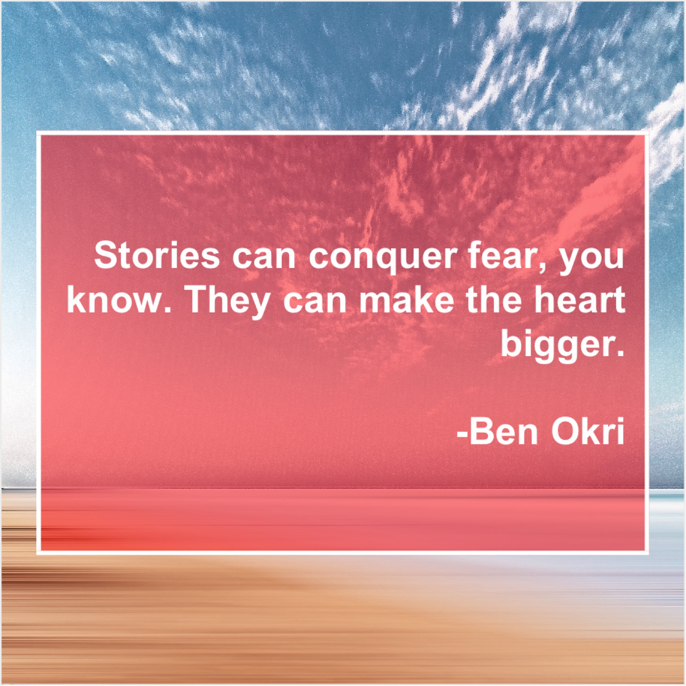 Ben Okri Ben Okri – Stories can conquer fear, you… January 26, 2019 admin “Stories can conquer fear, you know. They can make the heart bigger.”-Ben Okri