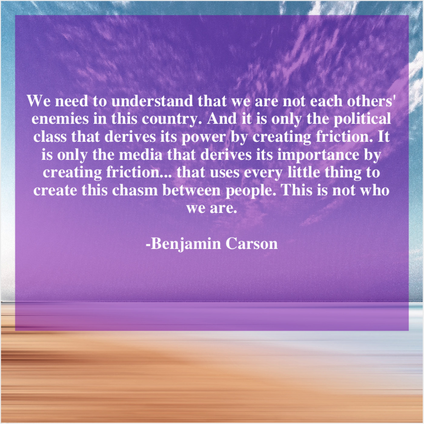 “We need to understand that we are not each others’ enemies in this country. And it is only the political class that derives its power by creating friction. It is only the media that derives its importance by creating friction… that uses every little thing to create this chasm between people. This is not who we are.”