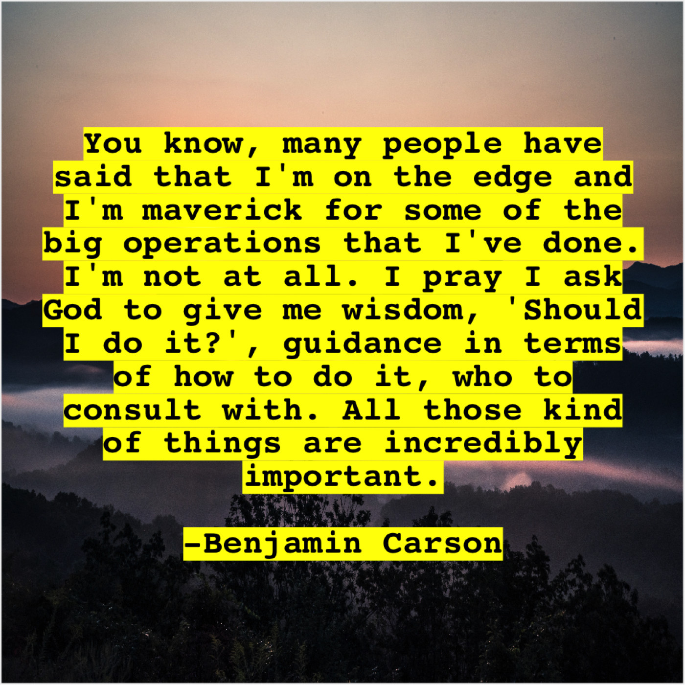 “You know, many people have said that I’m on the edge and I’m maverick for some of the big operations that I’ve done. I’m not at all. I pray I ask God to give me wisdom, ‘Should I do it?’, guidance in terms of how to do it, who to consult with. All those kind of things are incredibly important.”
