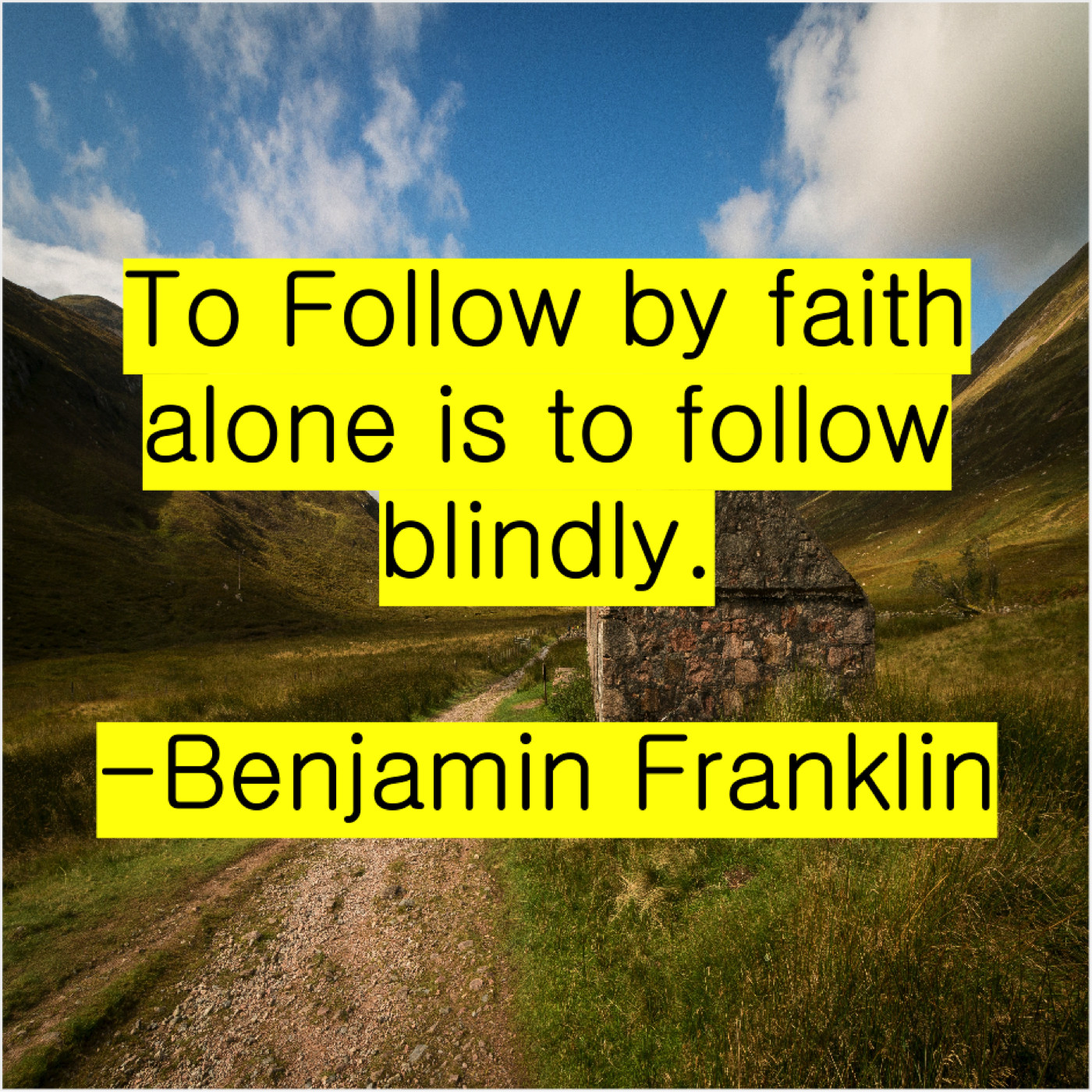Benjamin Franklin Benjamin Franklin – To Follow by faith alone… September 8, 2019 admin “To Follow by faith alone is to follow blindly.”-Benjamin Franklin