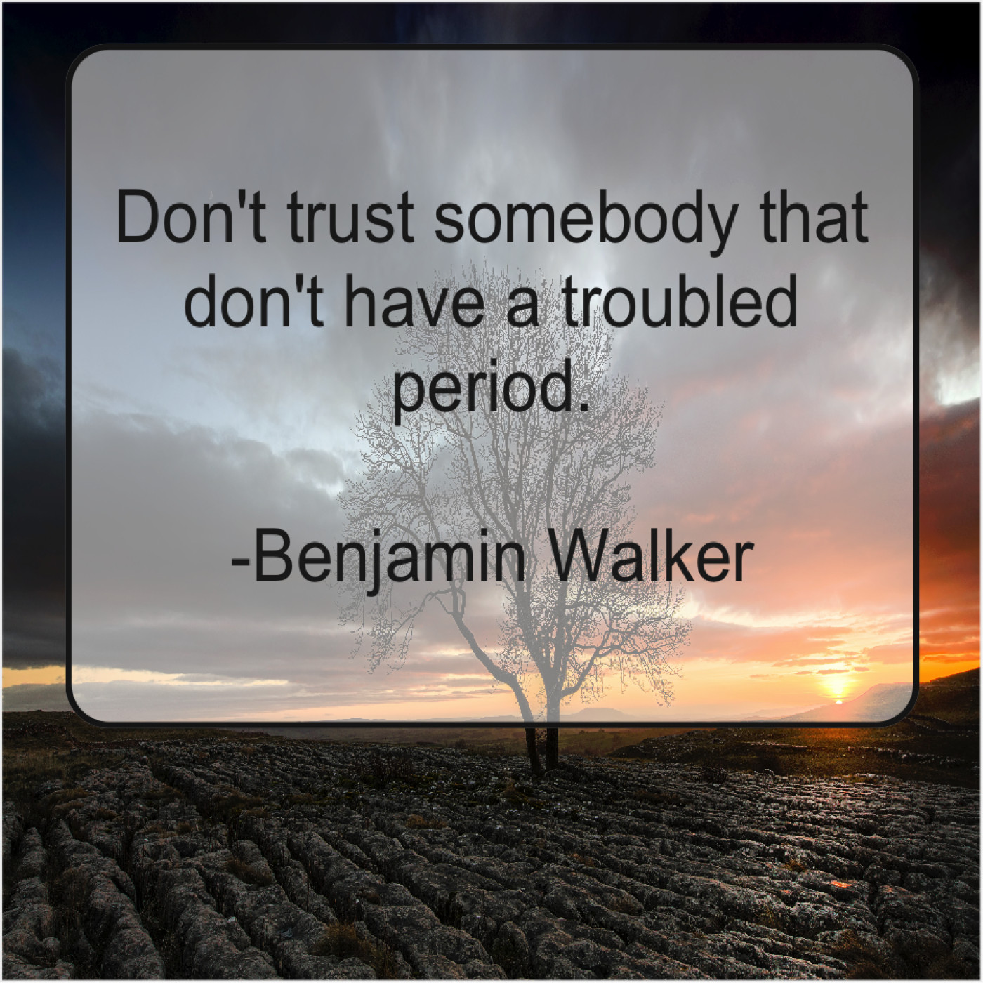 Benjamin Walker Benjamin Walker – Don’t trust somebody that don’t… April 18, 2019 admin “Don’t trust somebody that don’t have a troubled period.”-Benjamin Walker