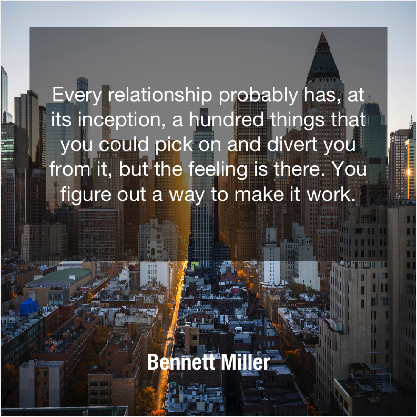 Bennett Miller Bennett Miller – Every relationship probably has, at… January 31, 2019 admin “Every relationship probably has, at its inception, a hundred things that you could pick on and divert you from it, but the feeling is there. You figure out a way to make it work.”-Bennett Miller