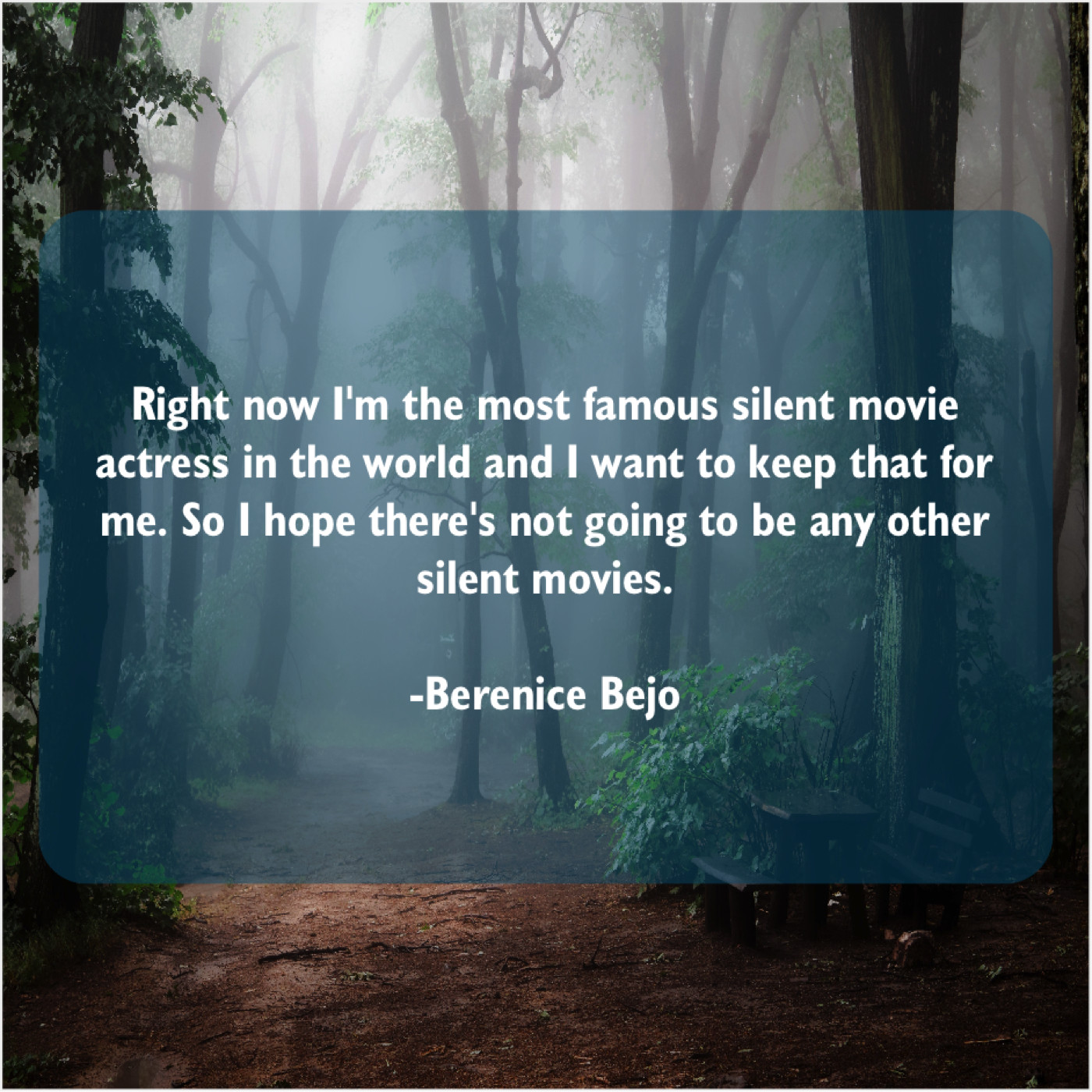 Berenice Bejo Berenice Bejo – Right now I’m the most… June 10, 2019 admin “Right now I’m the most famous silent movie actress in the world and I want to keep that for me. So I hope there’s not going to be any other silent movies.”-Berenice Bejo