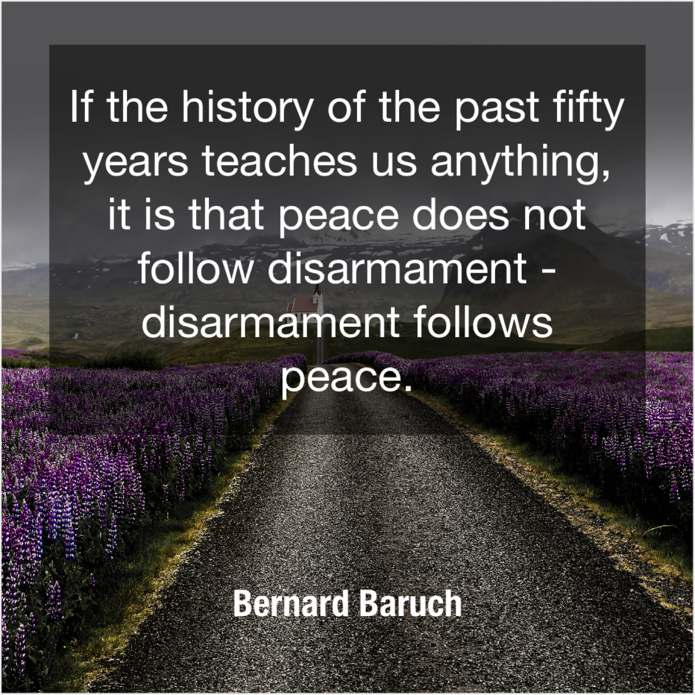 Bernard Baruch Bernard Baruch – If the history of the… November 17, 2018 admin “If the history of the past fifty years teaches us anything, it is that peace does not follow disarmament – disarmament follows peace.”-Bernard Baruch