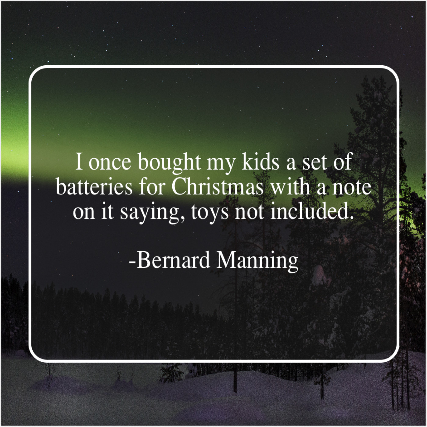 Bernard Manning Bernard Manning – I once bought my kids… January 27, 2019 admin “I once bought my kids a set of batteries for Christmas with a note on it saying, toys not included.”-Bernard Manning