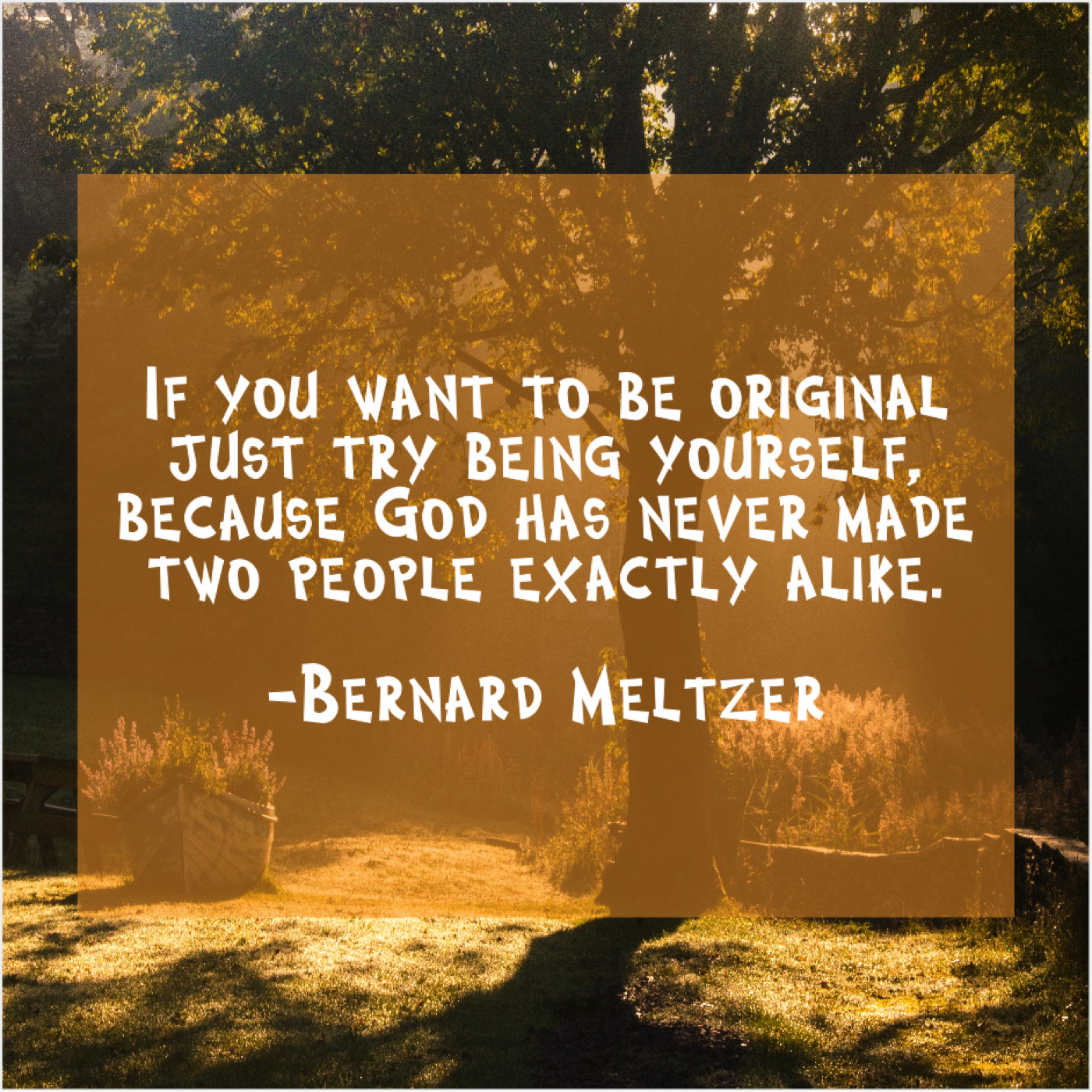 Bernard Meltzer Bernard Meltzer – If you want to be… September 17, 2019 admin “If you want to be original just try being yourself, because God has never made two people exactly alike.”-Bernard Meltzer