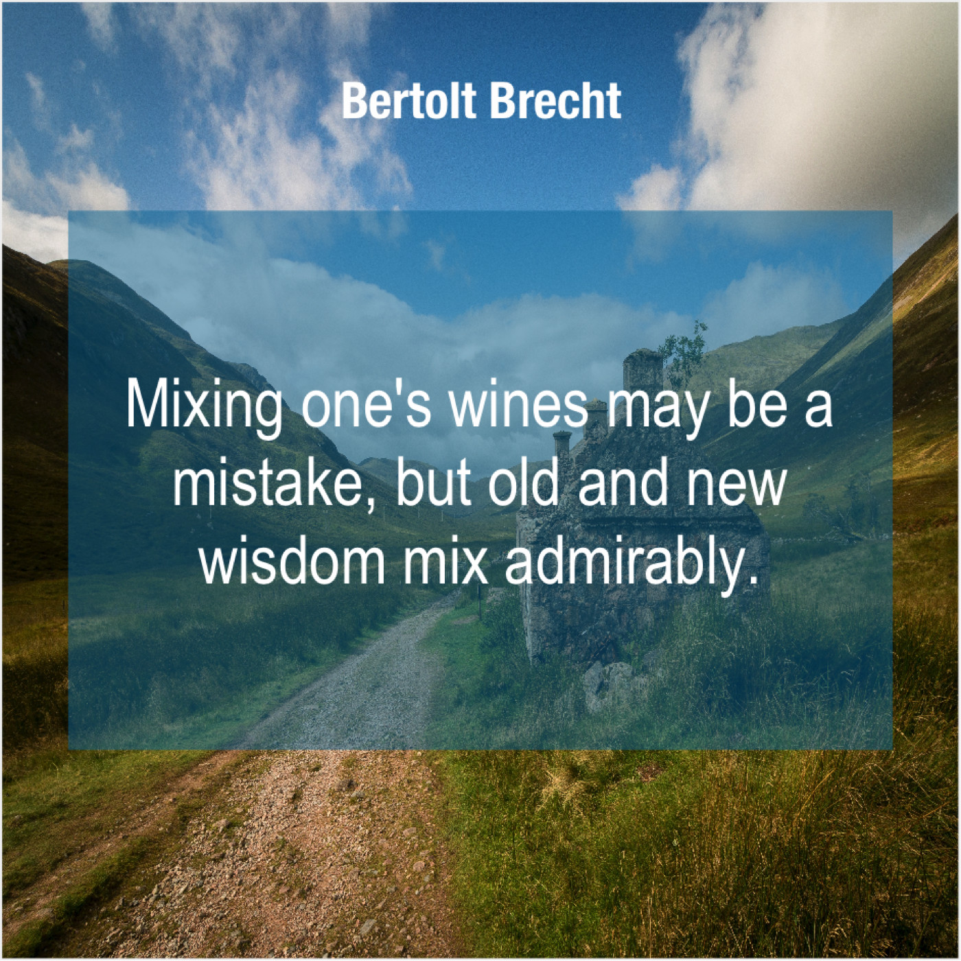 Bertolt Brecht Bertolt Brecht – Mixing one’s wines may be… May 22, 2019 admin “Mixing one’s wines may be a mistake, but old and new wisdom mix admirably.”-Bertolt Brecht