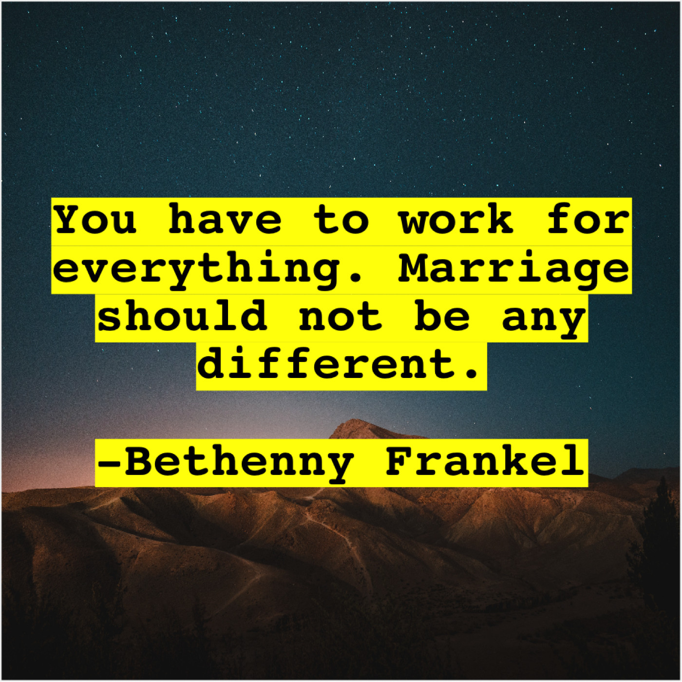 Bethenny Frankel Bethenny Frankel – You have to work for… January 21, 2019 admin “You have to work for everything. Marriage should not be any different.”-Bethenny Frankel
