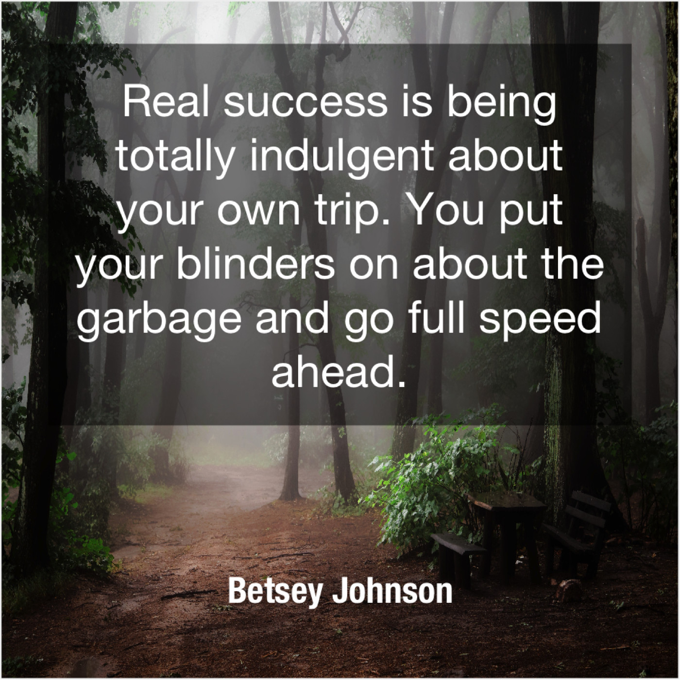 Betsey Johnson Betsey Johnson – Real success is being totally… November 21, 2018 admin “Real success is being totally indulgent about your own trip. You put your blinders on about the garbage and go full speed ahead.”-Betsey Johnson