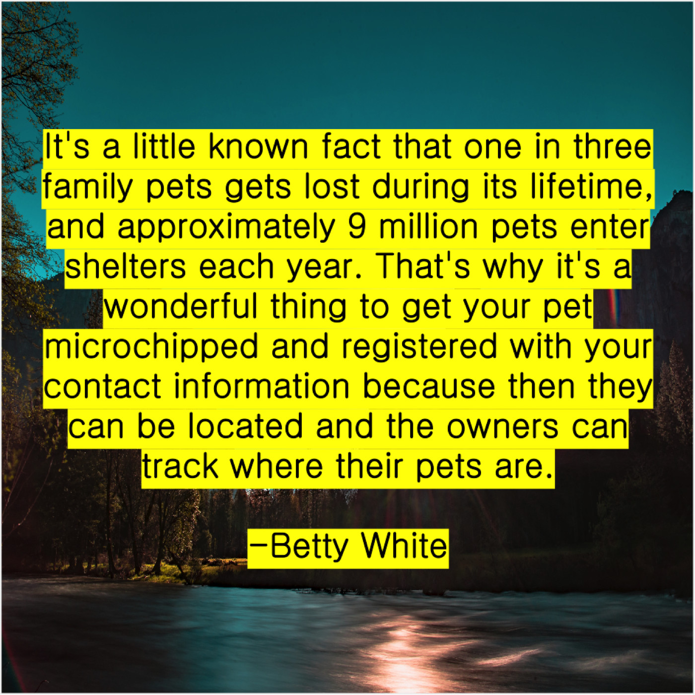 “It’s a little known fact that one in three family pets gets lost during its lifetime, and approximately 9 million pets enter shelters each year. That’s why it’s a wonderful thing to get your pet microchipped and registered with your contact information because then they can be located and the owners can track where their pets are.”
