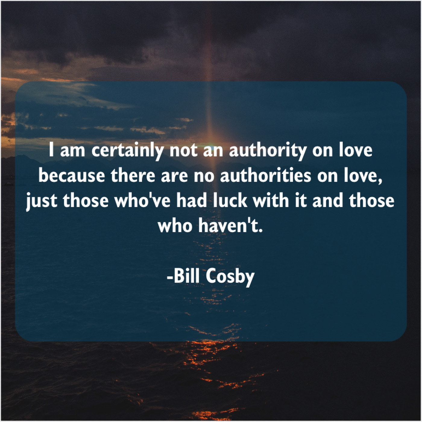 “I am certainly not an authority on love because there are no authorities on love, just those who’ve had luck with it and those who haven’t.”