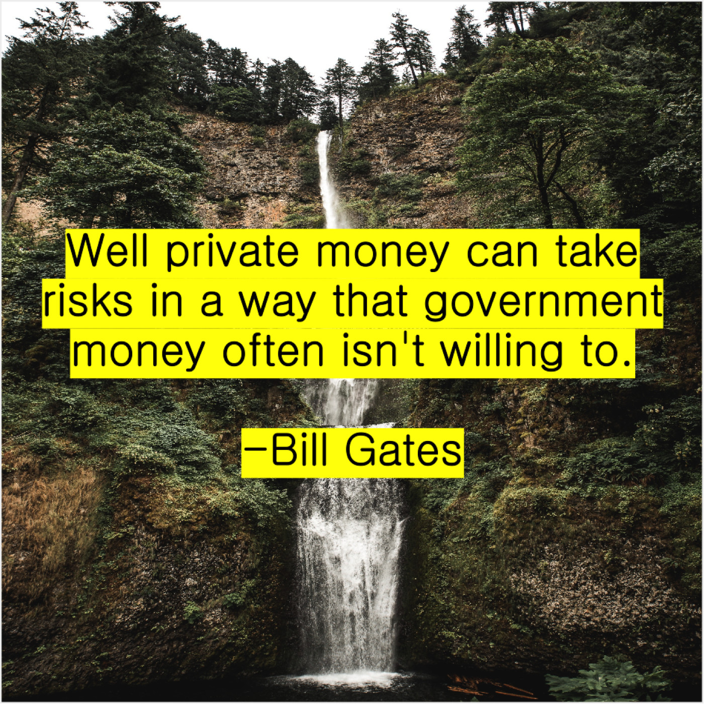 Bill Gates Bill Gates – Well private money can take… January 17, 2019 admin “Well private money can take risks in a way that government money often isn’t willing to.”-Bill Gates