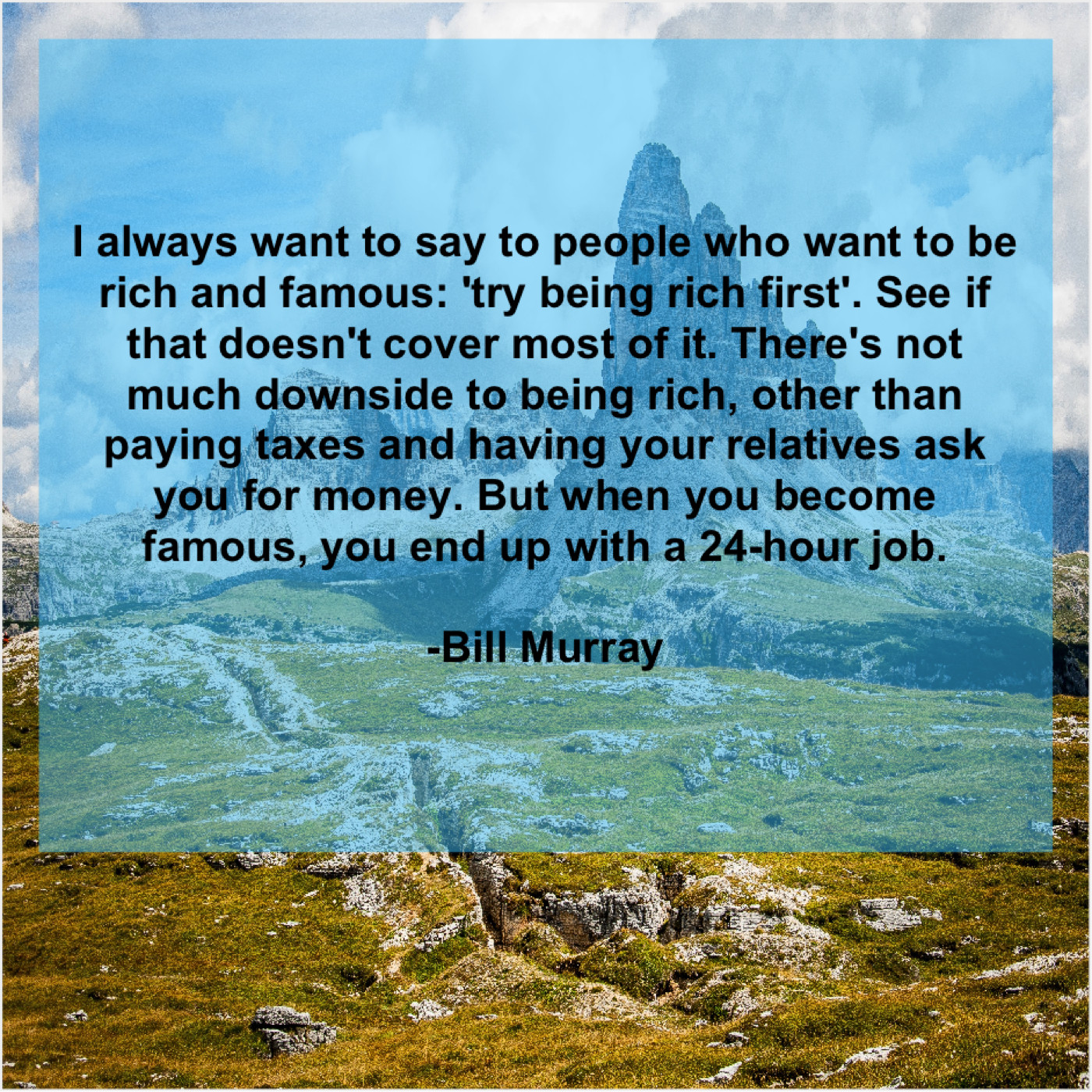 “I always want to say to people who want to be rich and famous: ‘try being rich first’. See if that doesn’t cover most of it. There’s not much downside to being rich, other than paying taxes and having your relatives ask you for money. But when you become famous, you end up with a 24-hour job.”
