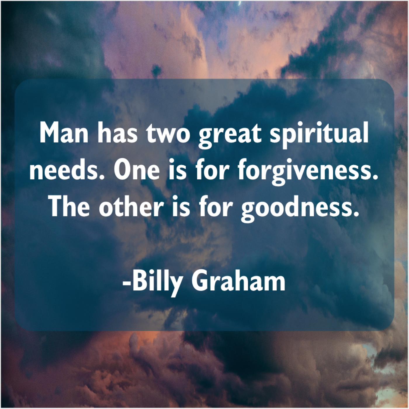 Billy Graham Billy Graham – Man has two great spiritual… July 29, 2019 admin “Man has two great spiritual needs. One is for forgiveness. The other is for goodness.”-Billy Graham