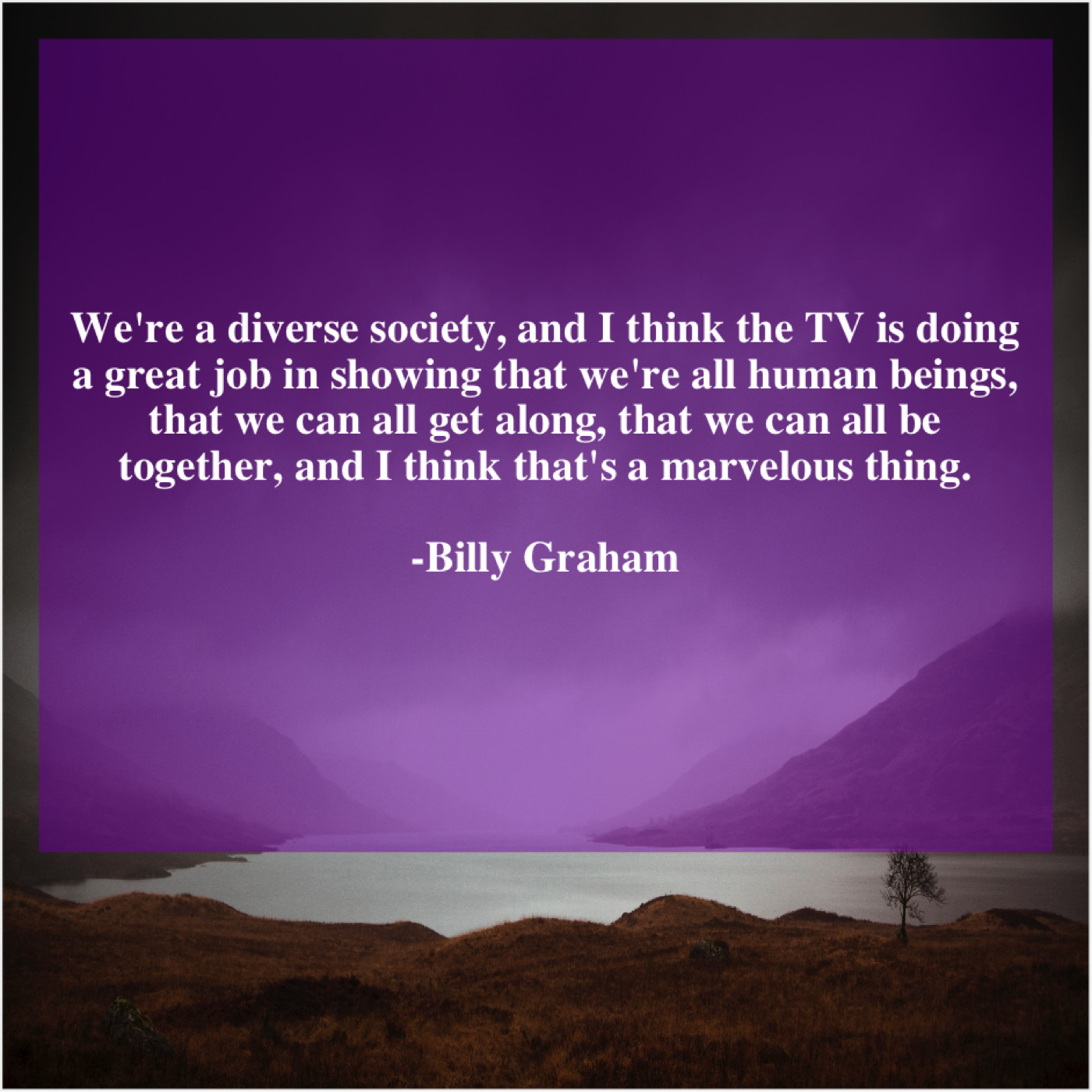 Billy Graham Billy Graham – We’re a diverse society, and… March 12, 2019 admin “We’re a diverse society, and I think the TV is doing a great job in showing that we’re all human beings, that we can all get along, that we can all be together, and I think that’s a marvelous thing.”-Billy Graham