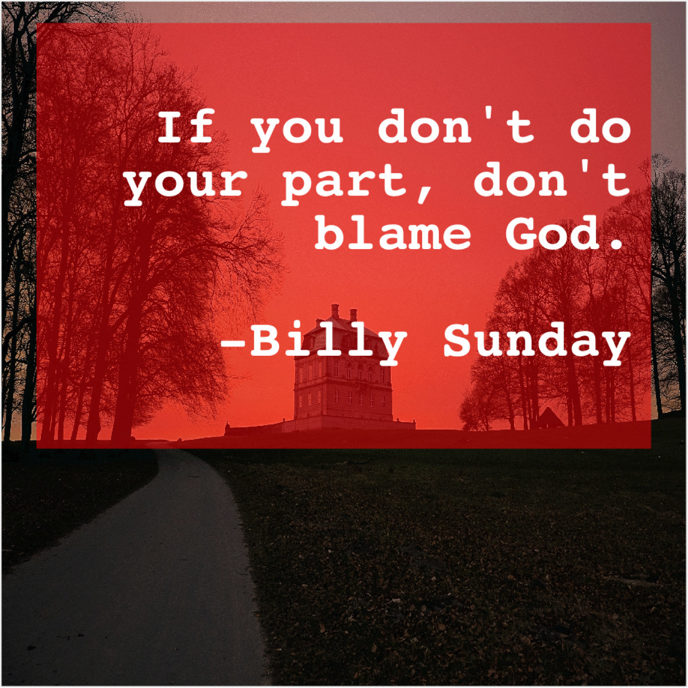 Billy Sunday Billy Sunday – If you don’t do your… July 19, 2019 admin “If you don’t do your part, don’t blame God.”-Billy Sunday