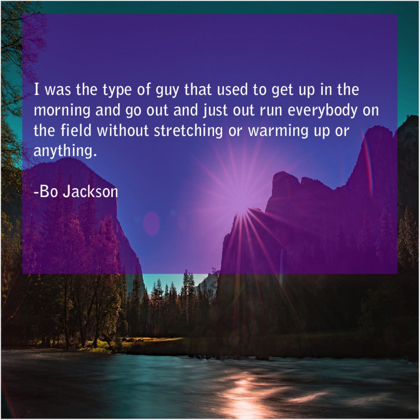 Bo Jackson Bo Jackson – I was the type of… August 29, 2019 admin “I was the type of guy that used to get up in the morning and go out and just out run everybody on the field without stretching or warming up or anything.”-Bo Jackson
